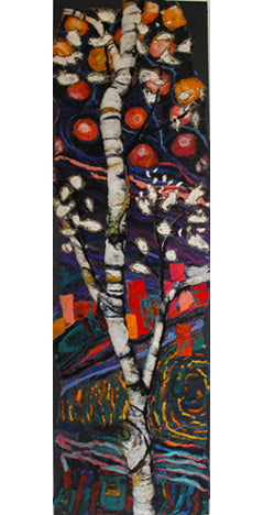 Op zwart schildersdoek bevestigd
